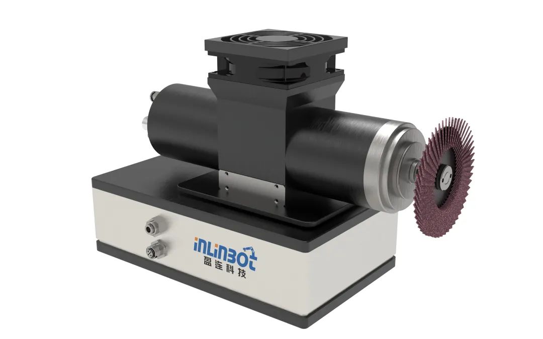 盈连科技推荐FEG-SH力控电动强磨机,该设备由力位补偿器3002作为力控核心部件,搭载2KW,12000RPM电主轴,配套磨料-小旋风,采用机器人抓持工件和磨头固定的方法,很好地实现了自动上下料和自动打磨。